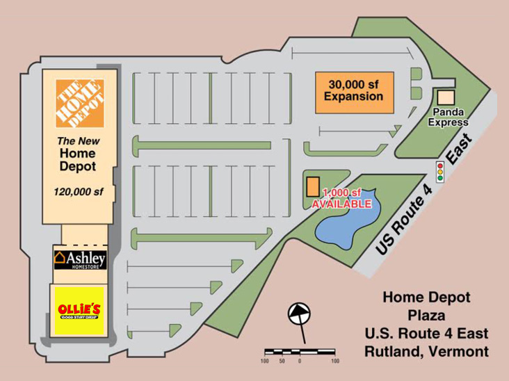 As the only Home Depot within 30 miles, the drawing power of this store is unparalleled, allowing prospective co-tenants to consider this location as having 25 mile+ trade area! The publicity surrounding the effort to get this project through to approvals has put this location on the forefront of people’s awareness. Everyone from Burlington to Bennington knows where the new Home Depot Plaza is! Big Lots leases the 25,000 sf co-anchor endcap space, and the furniture store, Ashley Furniture, has leased the 26,000 sf location and we urge you to contact us now, if you would like to take advantage of the drawing power of these shopping center giants in southern Vermont as we expand!